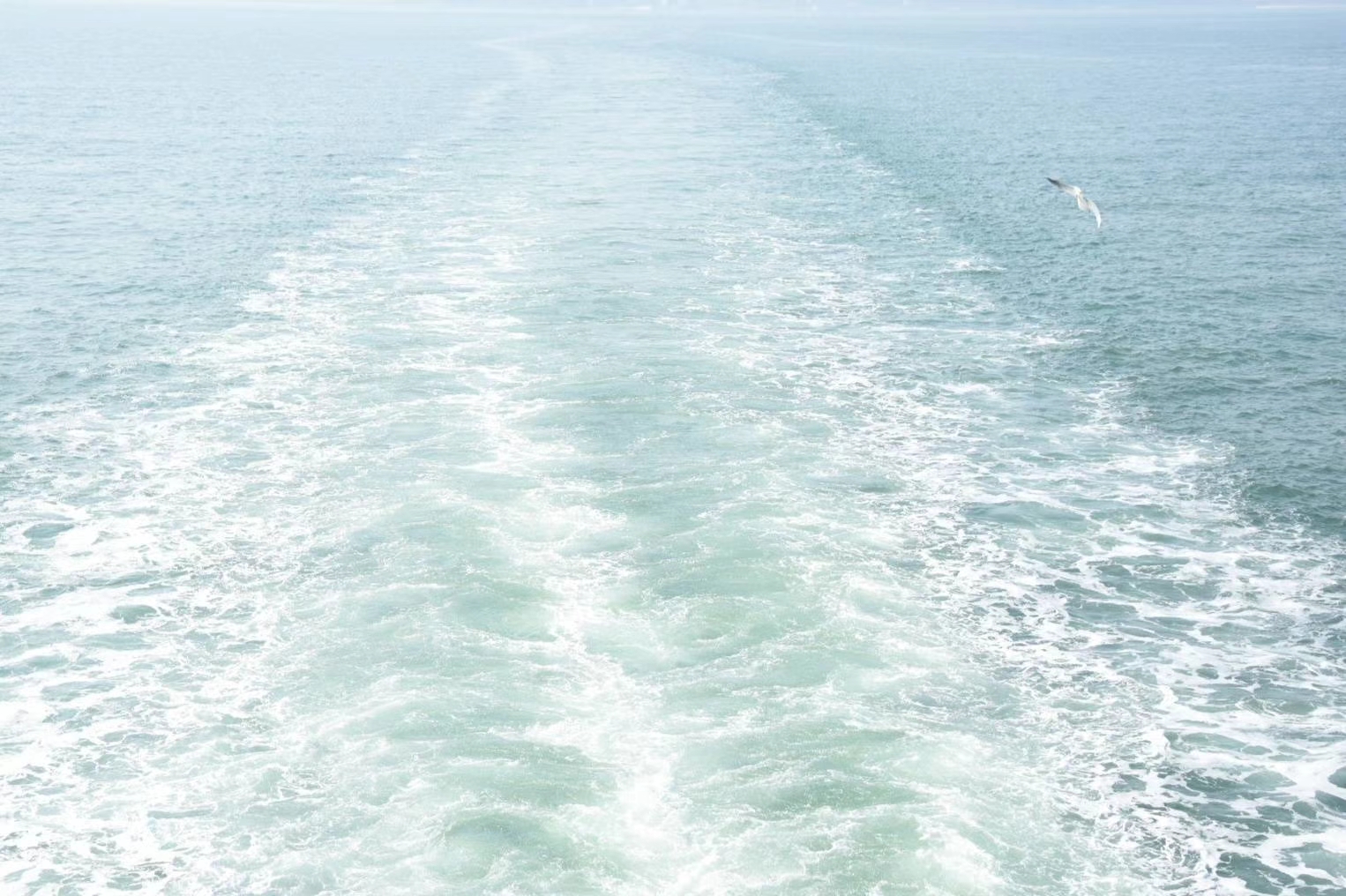 以下这个就是黄海渤海分界线,真的两边海是ä¸ä¸€æ ·çš„颜色,æ®è¯´æµªå¤§çš„æ—¶å€™æ›´æ˜æ˜¾ï¼Œä¸¤è¾¹ä¼šå‘生对冲。我å»çš„æ—¶å€™ç›¸å¯¹å¹³é™ï¼Œæ²¡é‚£ä¹ˆæ˜æ˜¾ã€‚